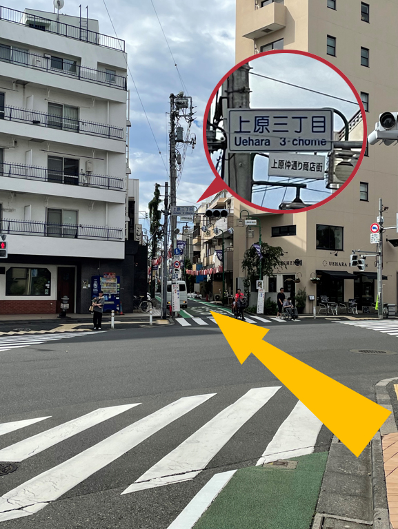 ④井の頭通りを渡り「上原三丁目」信号から上原仲通り商店街を進みます
