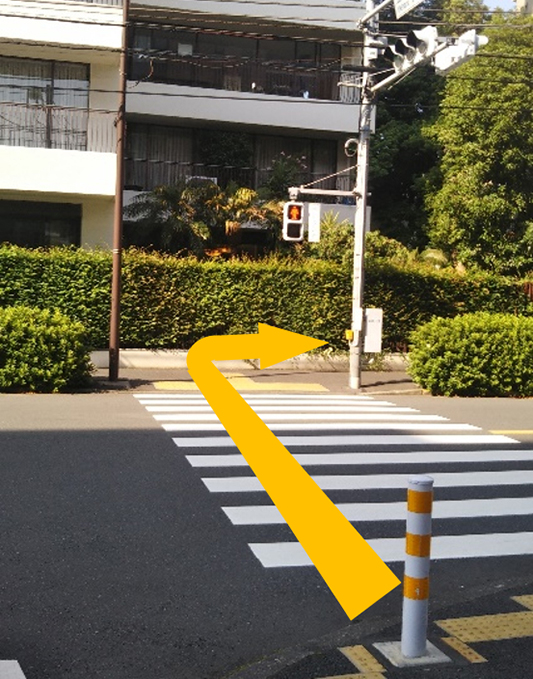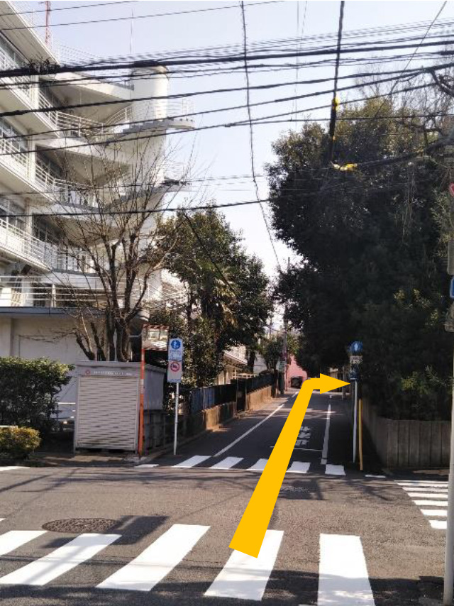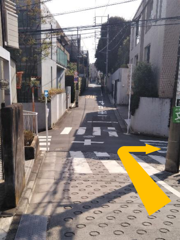 ⑨2つ目の横断歩道を渡り最初の角を右折します