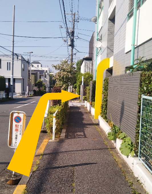 ⑧道なりに直進し最初の角を右折します