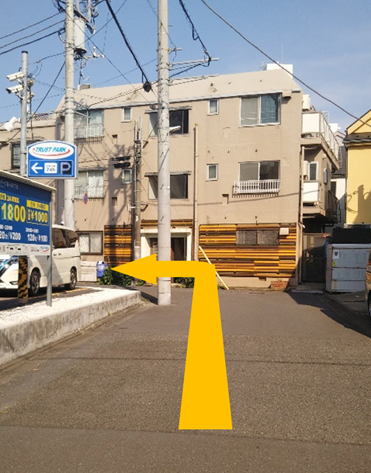 ⑨コインパーキングの角を左折します。